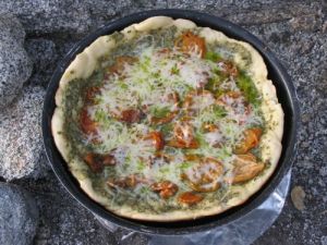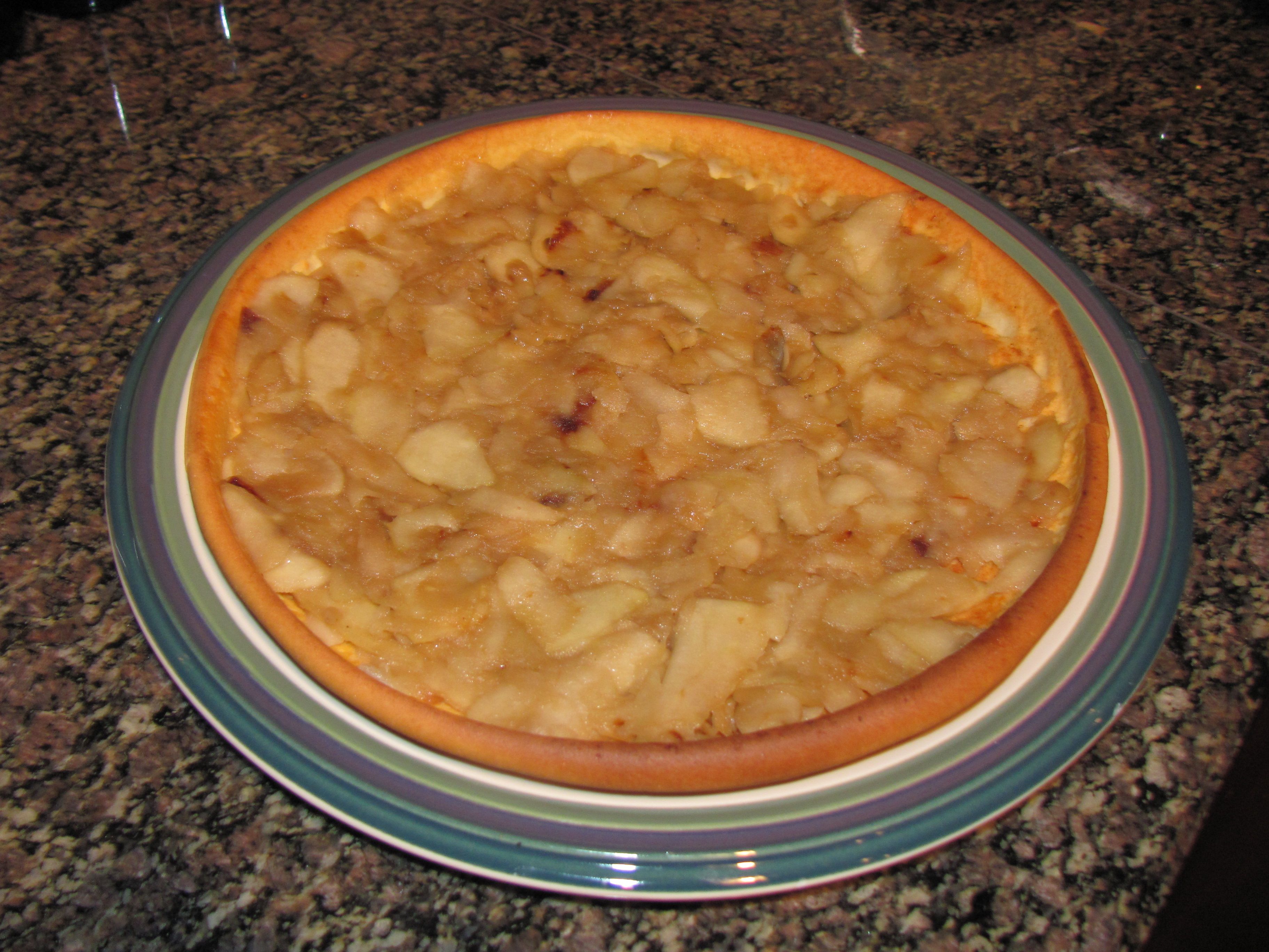 My key decision…at least I think it led to the excellent result…was to use convection baking, always a feature of our oven here. (I’m excited to get back to Seattle and try this there in our new oven, hoping for the same result.) So 15 minutes at 400, 10 minutes at 325. No bubbles. Fully detached from the pan. Sautéed the apples in butter, added some sugar. “Poetry on a plate”